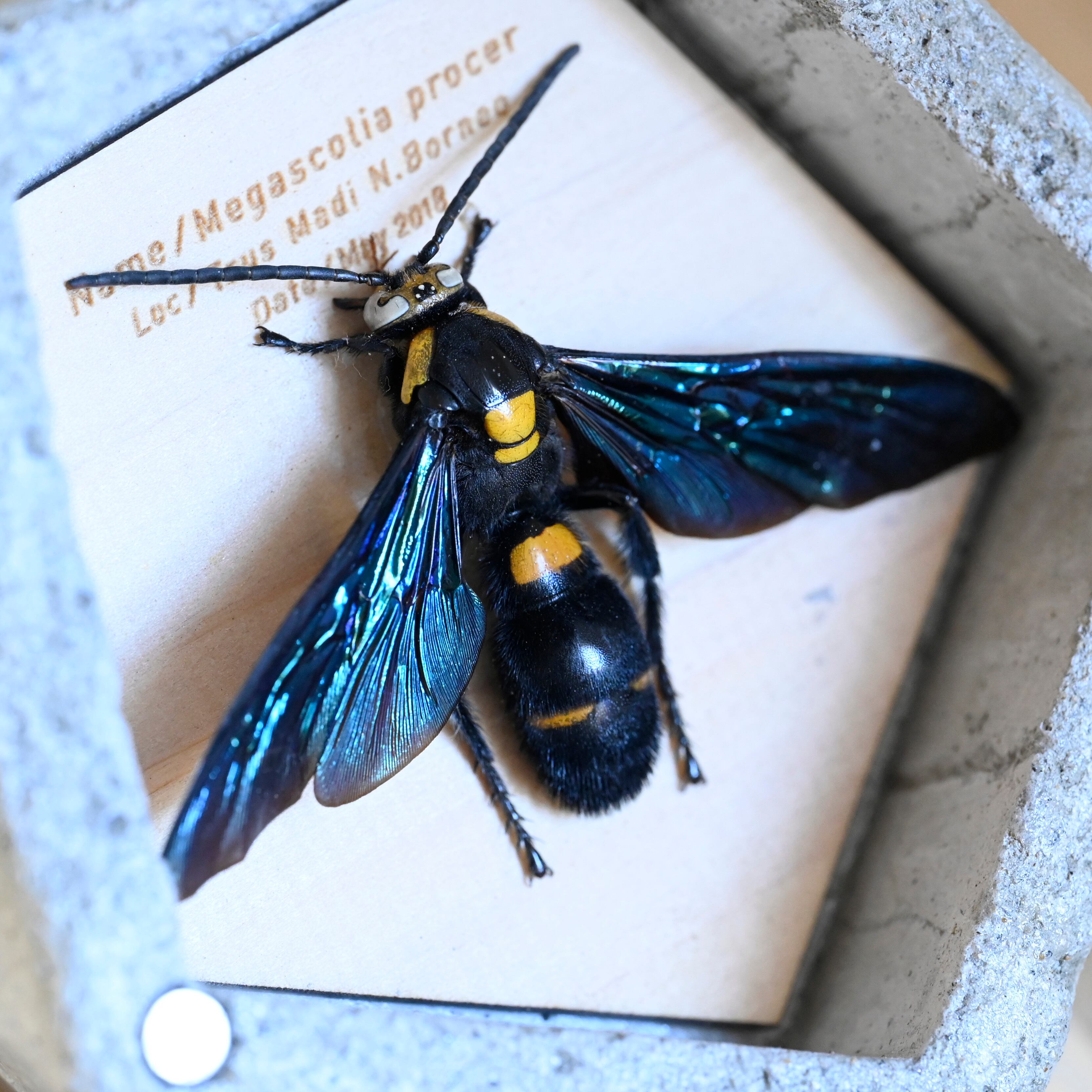 オオツチバチ[Megascolia procer]はインドネシアに生息している昆虫で、蝶のような色あざかな翅が特徴的な昆虫です。